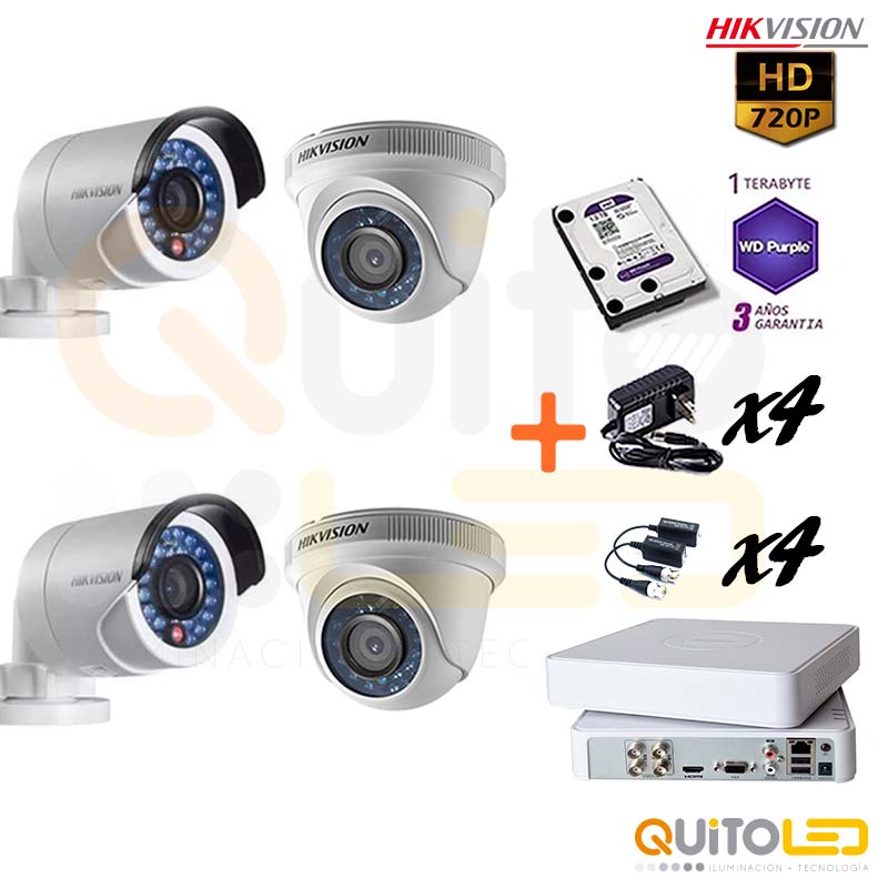 Kit 4 Cámaras de seguridad 720P Hikvision Disco Duro 1TB