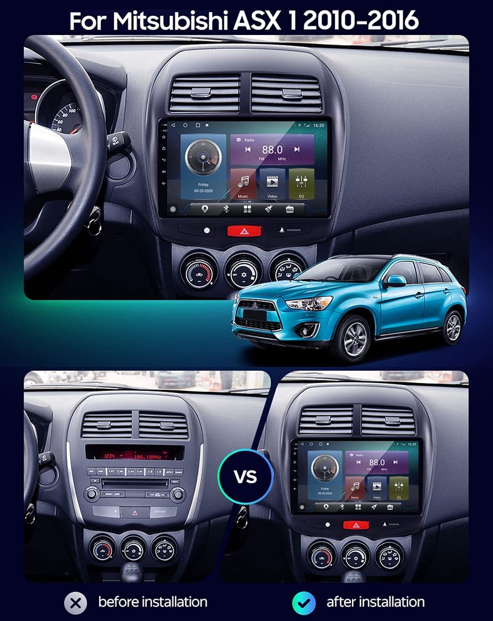 Radio Android con adaptador original para Asx 2011, 9″