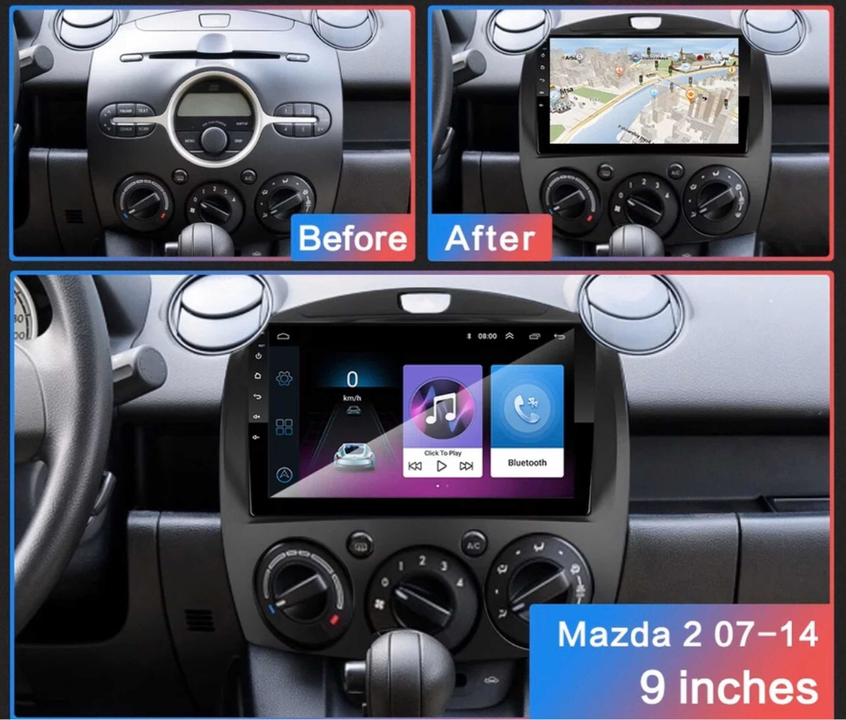Radio Android con adaptador original para Mazda 2 2007-2014 ,9″